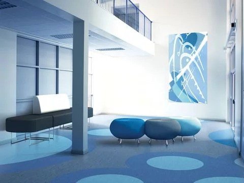 - Heavy-duty homogeneous vinyl flooring with duotone marbleised decoration