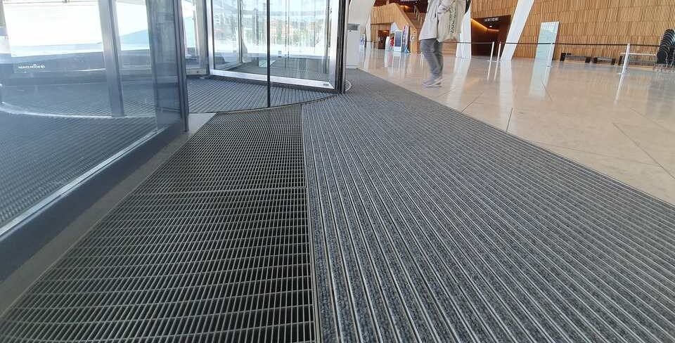 ABI Entrance Mats are premium-quality aluminum matting systems designed to deliver superior performance in high-traffic areas. Engineered with durable anodized aluminum profiles and customizable inserts such as carpet, rubber, or needle punch, these mats effectively remove dirt, moisture, and debris at building entrances. Their multi-zone functionality combines scraping, cleaning, and drying in one integrated system, ensuring cleaner and safer interiors. With fire and slip-resistant properties, noise reduction backing, and eco-friendly construction, ABI Entrance Mats offer long-lasting durability, easy maintenance, and modern aesthetics suitable for commercial, retail, and public spaces.